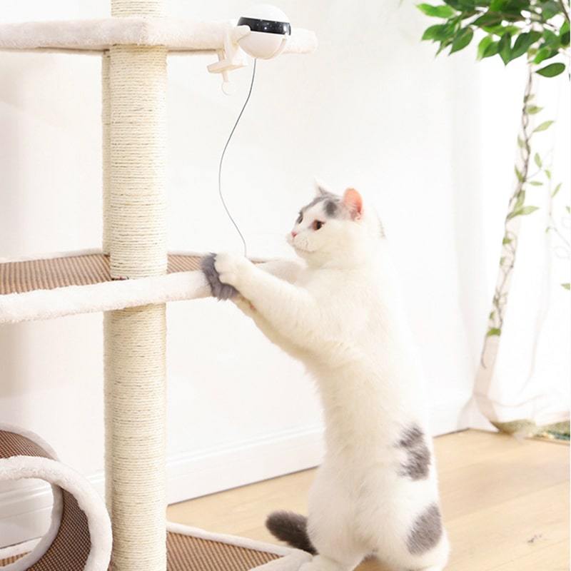 Su mecanismo eléctrico hará que la bola colgante se mueva sola para llamar la atención de tu minino. ¡Más interacción y más diversión! (Funciona con 2 pilas AA)