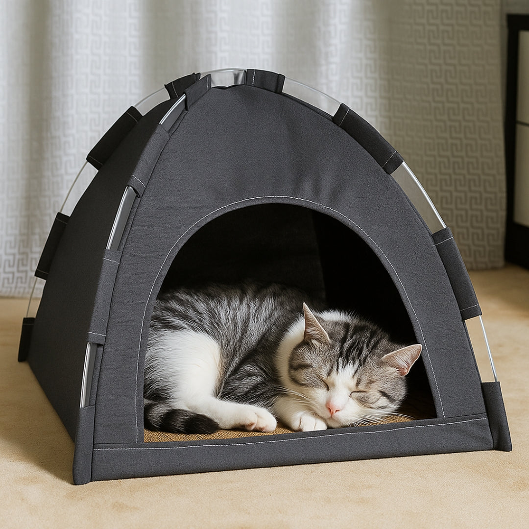 Convierte cualquier rincón de tu casa en un refugio acogedor y fresco para tu gato con la Cama en forma de Campaña Family. Ideal para ofrecerle descanso, seguridad y comodidad en cualquier momento del día.