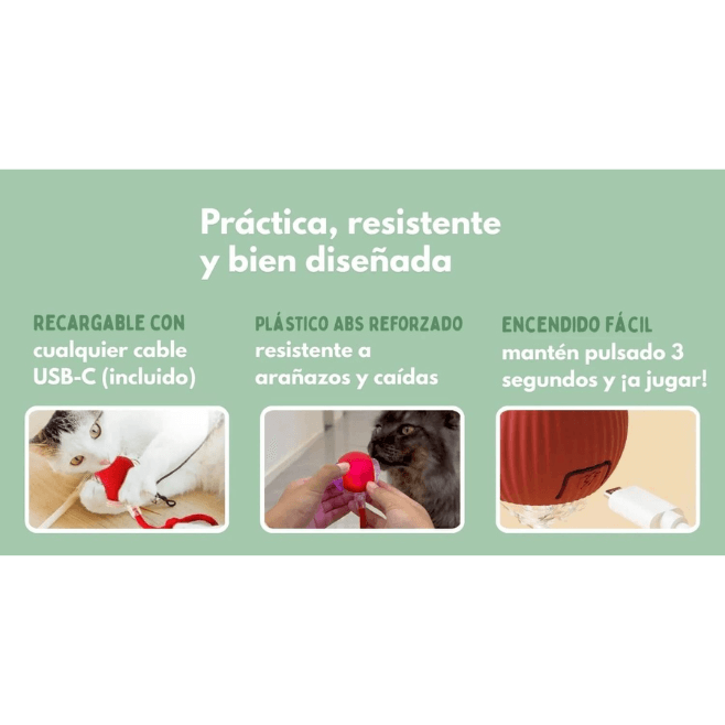 ✔️Ideal para jugar solo: Tu gato podrá perseguir la pelota sin necesidad de que estés presente.