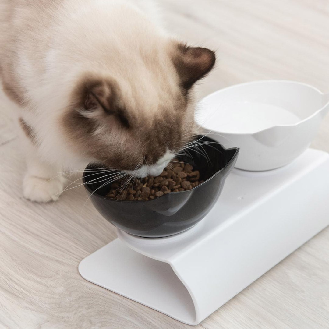 Sus cuencos a la altura de 8 cm e inclinados en 15º facilitarán la digestión de tu gato, evitando así que fuercen su postura, cargando todo el peso en sus patas delanteras y causando futuros problemas en su columna cervical. El comedero doble Kitty para gatos está pensado en el pleno bienestar de tu minino.