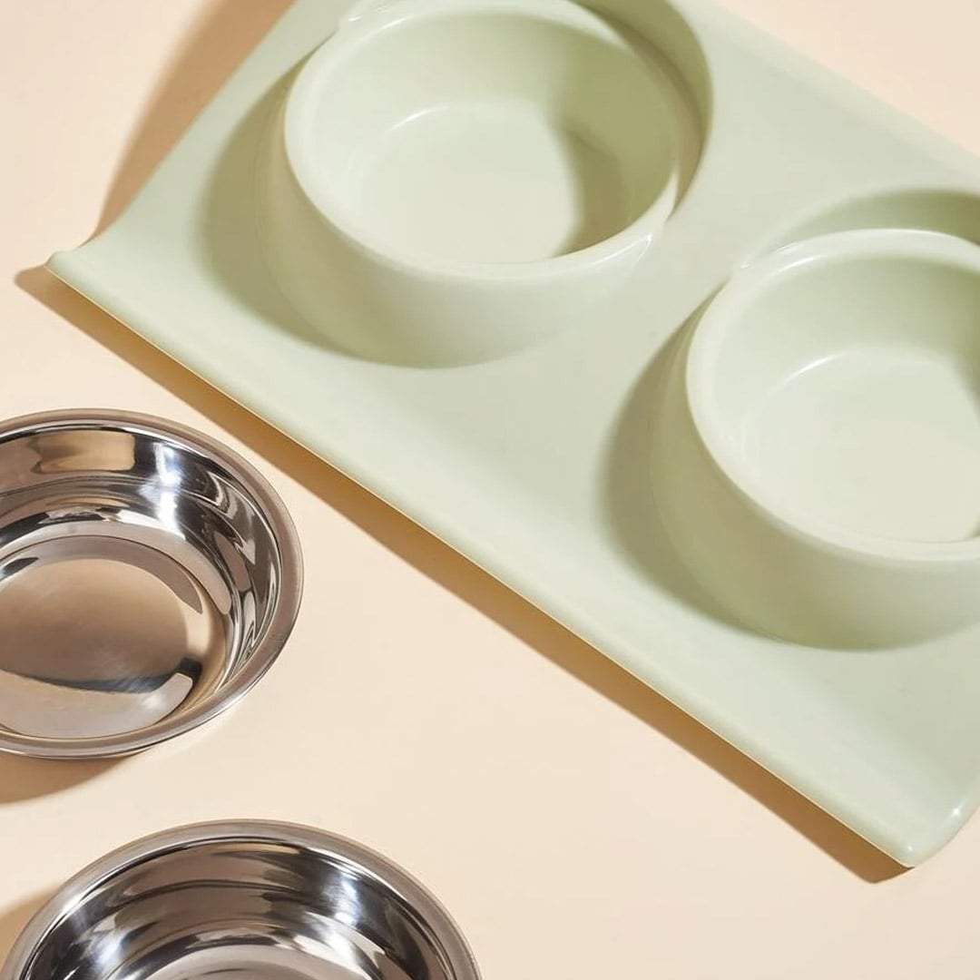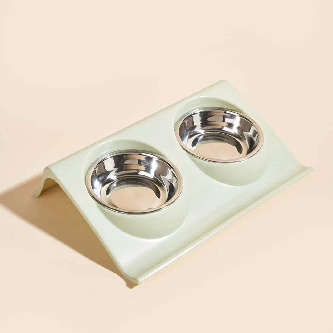Cuenco doble muy práctico para gatos. Puedes poner agua y comida en cada uno o sinó comida para más de 1 gato. Diseñado para evitar salpicaduras. Ideal para que tus mascotas coman con la máxima comodidad.
