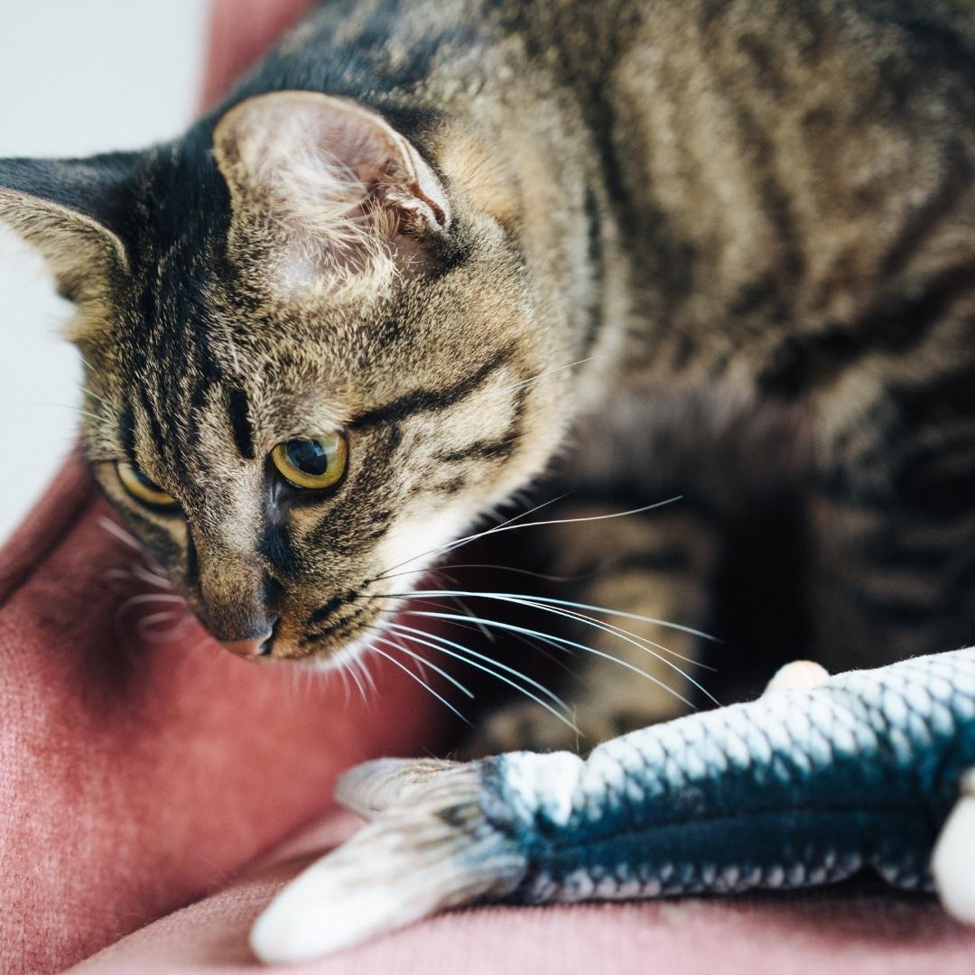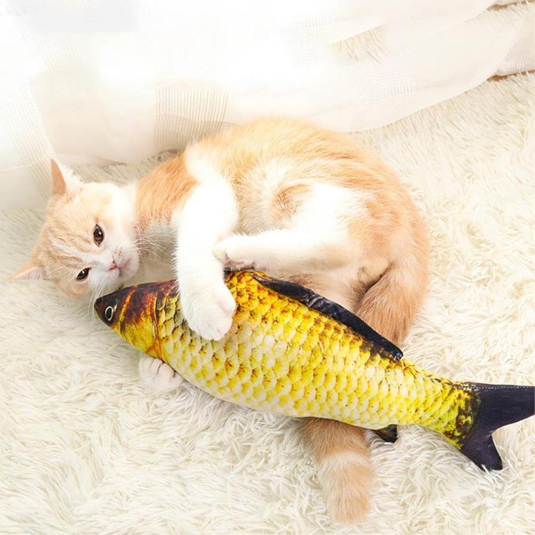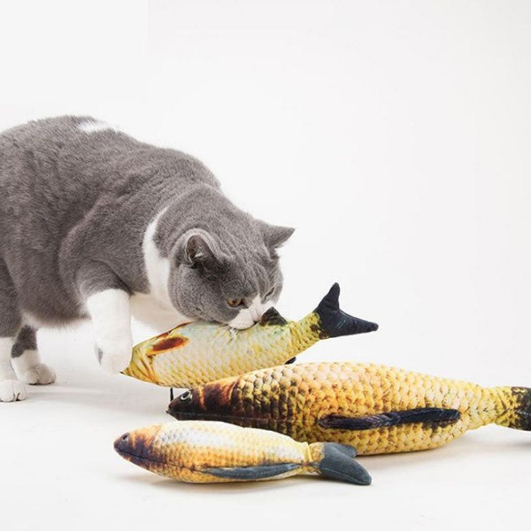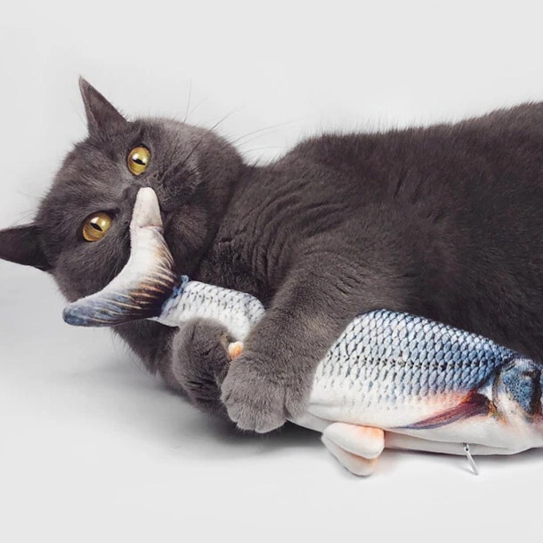 ✔️Libera el estrés: ¡Tu gato se lo pasará en grande mordiendo y pateando su pez interactivo!