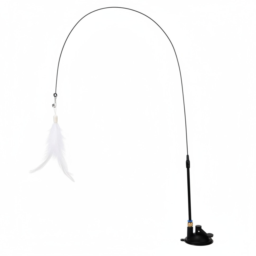 El juguete Stick Flyming es perfecto para gatos inquietos o con mucha energía. Su diseño consiste en una varita con plumas vibrantes en la punta, un clásico irresistible para cualquier felino. Se instala fácilmente gracias a su ventosa de gran agarre, permitiendo colocarlo en múltiples superficies: suelo, azulejos, ventanas, puertas o incluso en el lateral de un mueble.